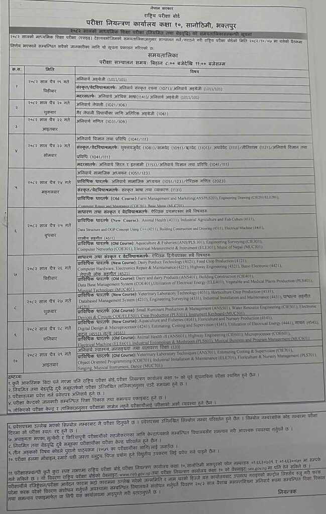 काठमाडौं । राष्ट्रिय परीक्षा बोर्डले एसईईको तालिका सार्वजनिक गरेको छ ।